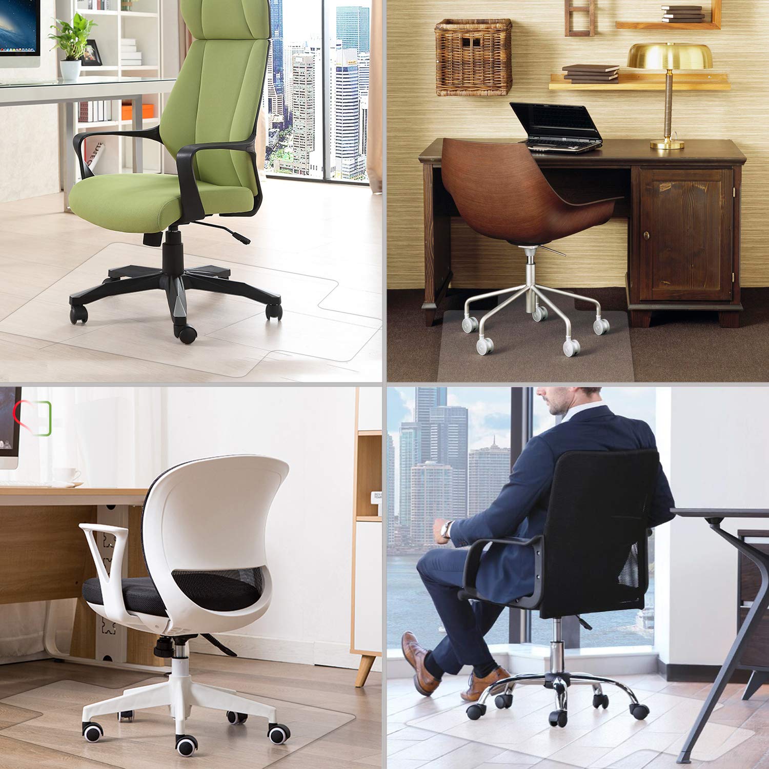 Yecaye office chair mat, 48×36 2mm thick, office chair mat for hardwood floor, computer&desk chair mat, crystal clear floor protectors office mats for rolling chairs, can't be used on carpet floor 95 $32 99 This protective finish usually is done with premium materials. If you're looking for something a bit more luxurious, this bamboo chair mat from anji mountain could be perfect for you. The mat safely adheres to hard surfaces to prevent all kind of floor damages that your chair may cause. It is transparent in color and is the most suitable for the office floor and textured surfaces. Another issue is uneven floors. To stop your wheels from rolling on hardwood floors is especially difficult. It's a nice feature, but it can also trip you up when you're walking around the mat. Anji mountain bamboo roll up office chair mat $139.00. I don't doubt that urethane casters will not cause damage to hardwood, but standard office chairs do not come with. I used a plastic chair mat to protect my new hardwood floor from the chair wheels and the unavoidable dirt and grit. The chair casters are usually made of hard plastic or hard nylon. The unique surface texture allows your office chair to move easily while carrying out daily tasks, but has enough grip to maintain controlled rolling so the chair doesn't skid around.