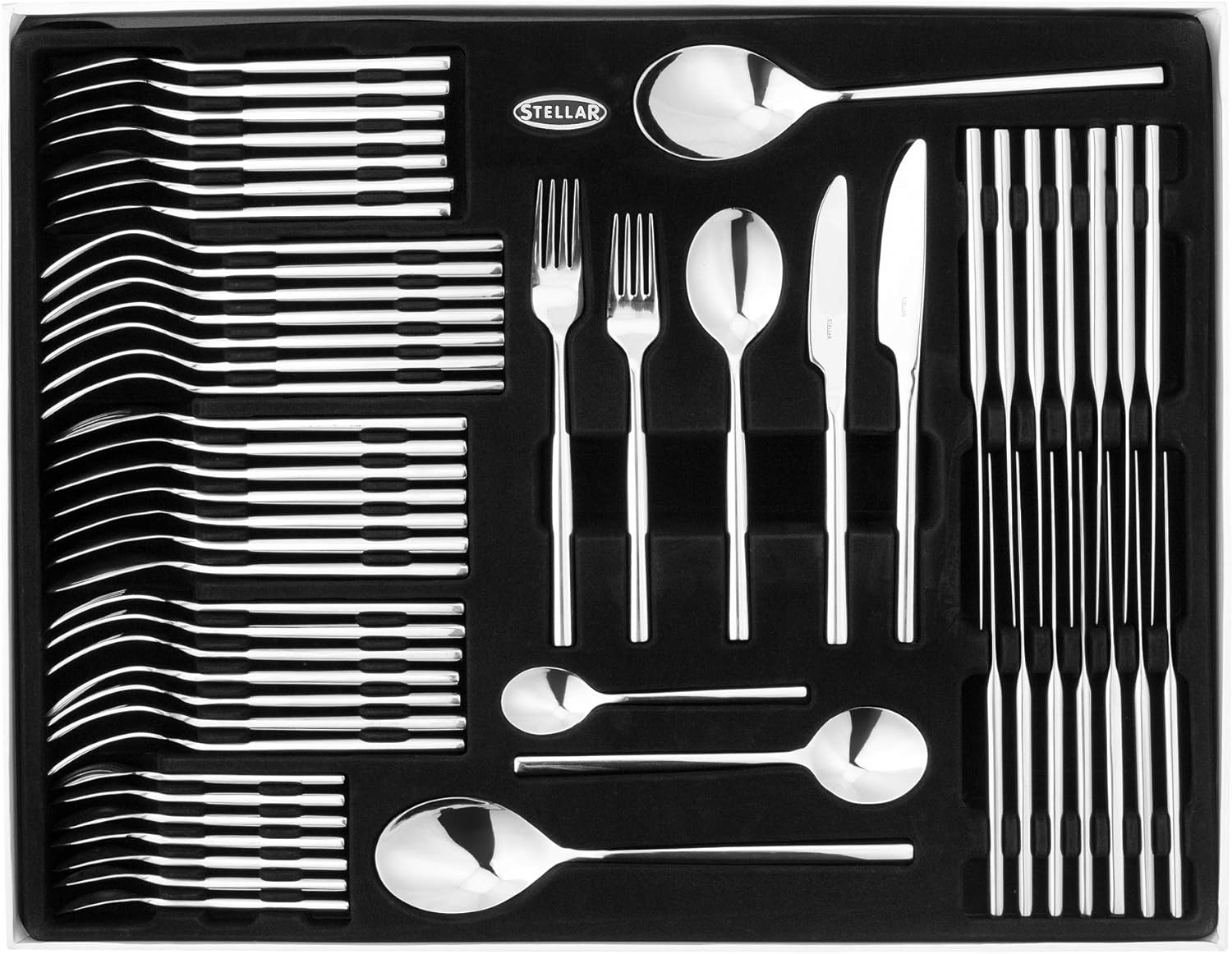 Choose your favourite style and complete the basic set with specialized pieces with specific functions. Stainless steel folding cutlery set. Polished cutlery with knives available with hollow handle and forged blade or classic monobloc. Sabichi glamour 16 piece cutlery set stainless steel dining gift box black. Stainless steel table cutlery come in different patterns and sizes to match well with your other dining pieces.