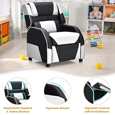 Costzon contemporary kids recliner, pu leather lounge furniture for living.