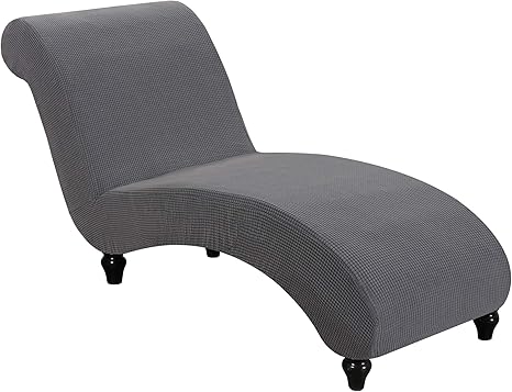 Chaise lounge indoor chair tufted velvet fabric, modern long lounger for office or living room (grey).