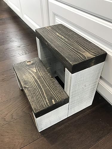 This rustic, modern step stool is the perfect height to be used with your kiddos in the kitchen, bathroom, really anywhere in your home!