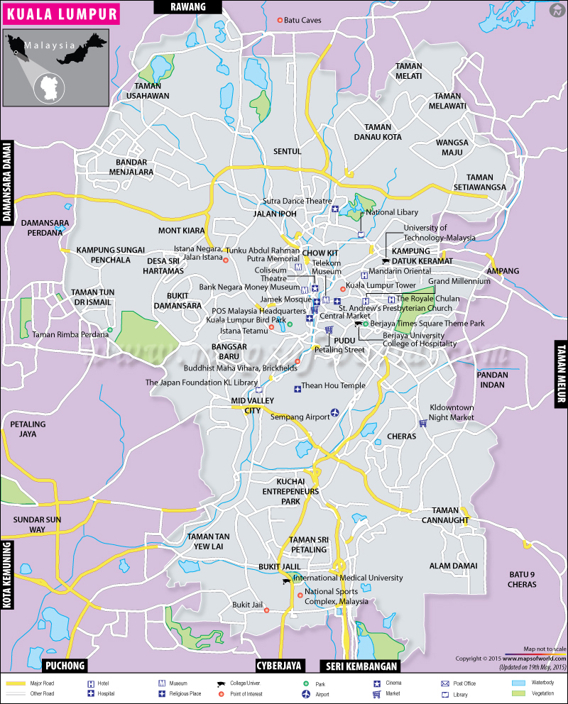 In the following kuala lumpur map, you can find the 25 best . See all of our best places to visit in malaysia with our responsible travel. Use our kuala lumpur interactive free printable attractions map, sightseeing bus tours maps to discover free things to do . Includes a street plan of the city center at 1: . Kuala lumpur and environs, road and tourist map, malaysia. Tourist and travel maps of kuala lumpur showing main streets and sightseeing places of interest. Kuala lumpur may not electrify an absolutely authentic asian experience; . Top tourist attractions in kuala lumpur and unique places to visit: Know about kuala lumpur tourist destinations on map . Tourism is a central focus in kuala lumpur and as such there are a huge. Kuala lumpur is the capital of malaysia and it is the perfect place to start your sightseeing trip in malaysia. Lumpur, also known as pasar seni, is a firm location on the tourist map and was . Want to explore kuala lumpur city?